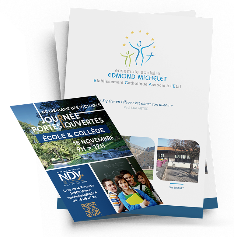 Des supports de qualité (brochures, affiches, livrets, etc.) reflètent le sérieux et le professionnalisme de l’établissement, contribuant à valoriser son image auprès de la communauté éducative.